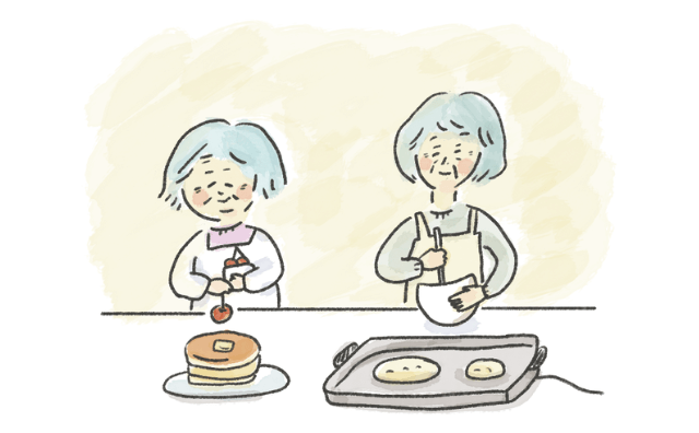 先日のおやつの時間、ホットプレートでホットケーキを焼き、サクランボを乗せて ワイワイ楽しそうに過ごされていました。